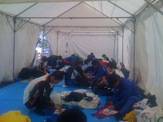 Waiting in the pre-race tent
